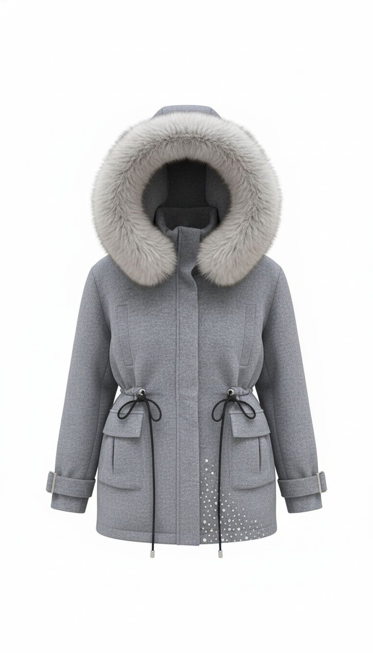 Парка из шерсти со съемным капюшоном в сером цвете - идеальное решение в зимние дни.
