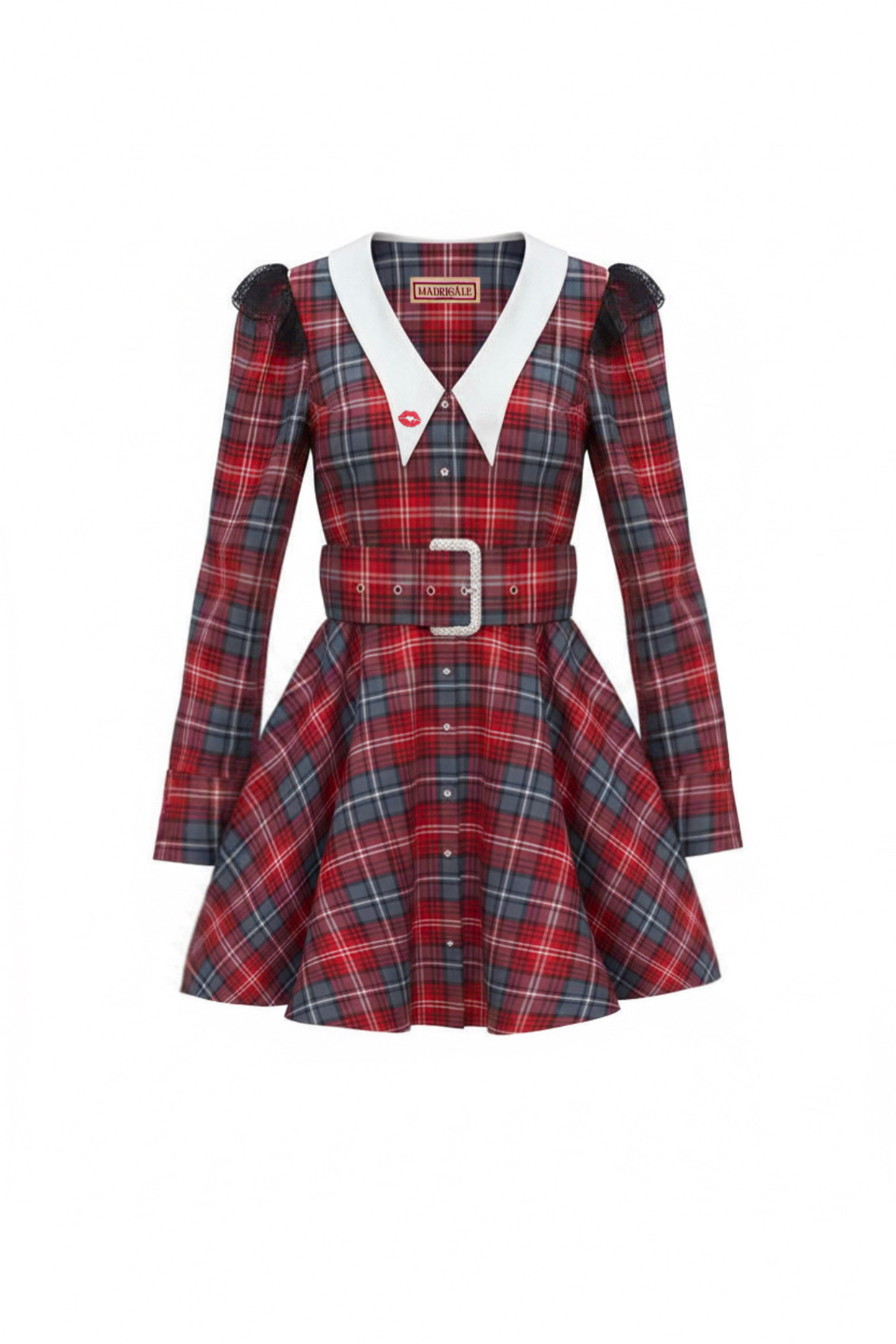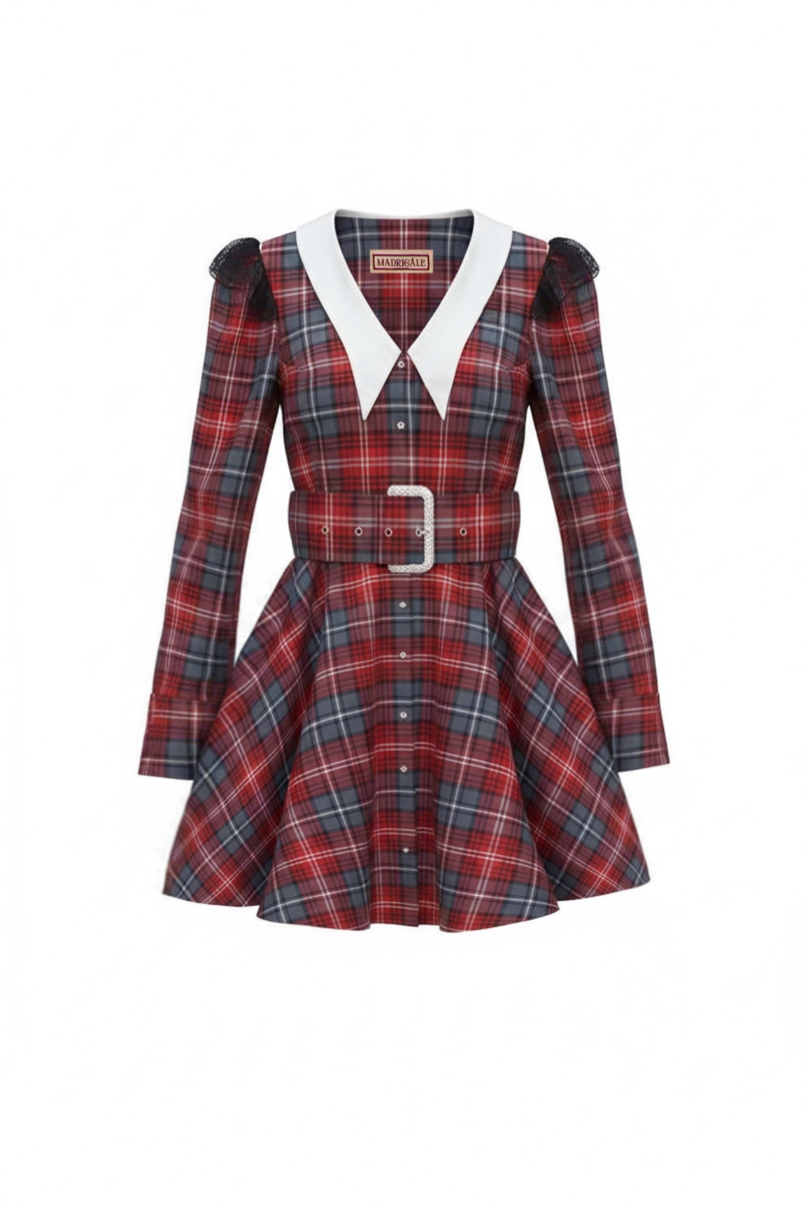 - Платье мини в клетку с авторским воротником