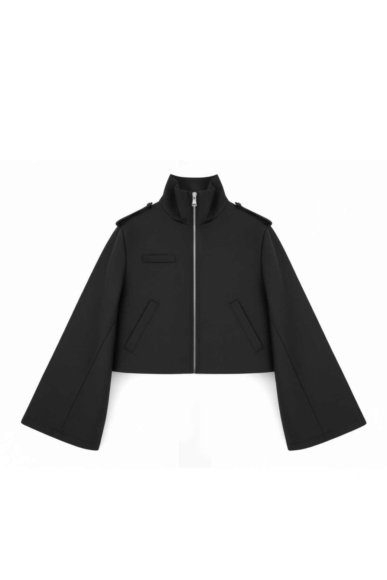 Укороченная ветровка в черном - база в гардеробе. На спине — айдентика нашего бренда, которая станет вашим манифестом.